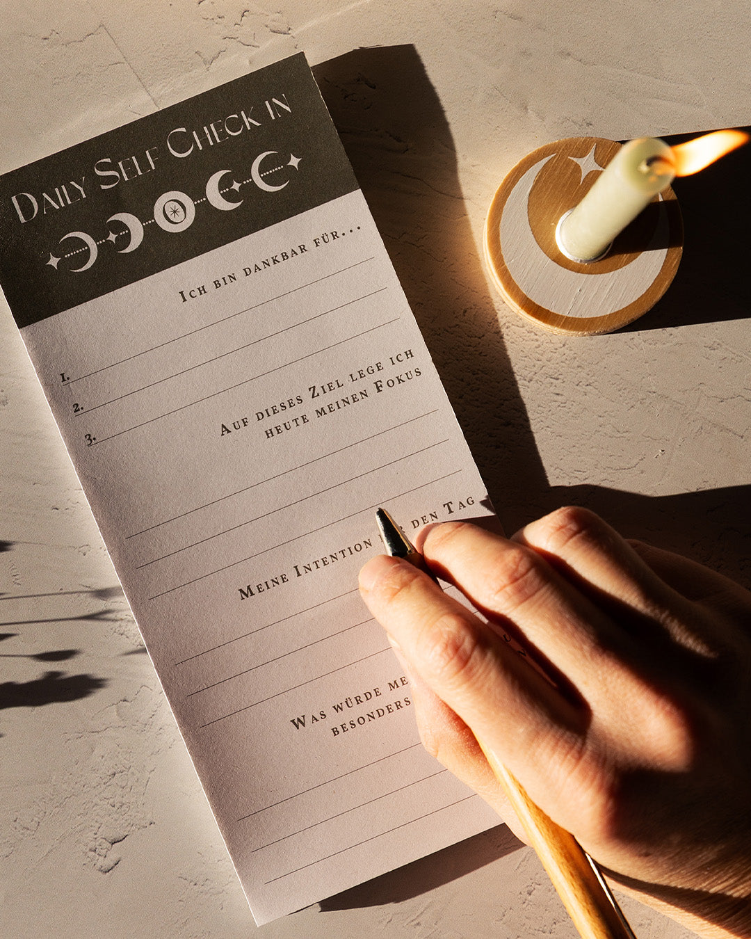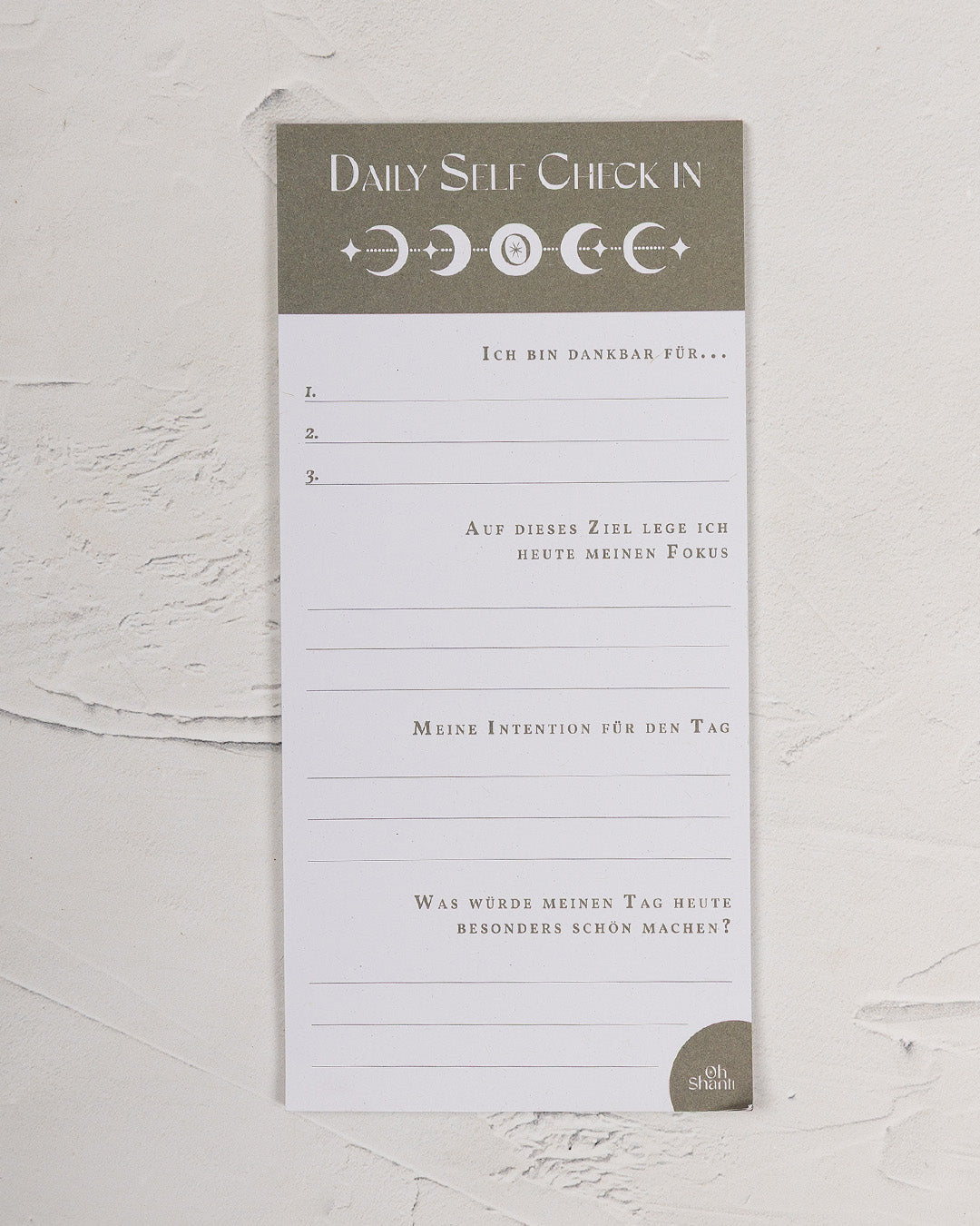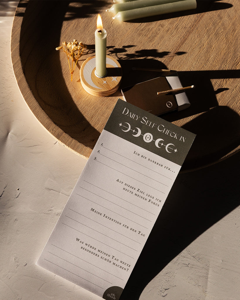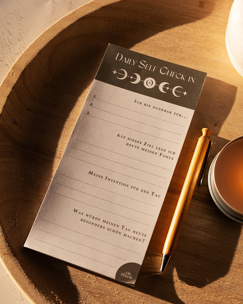 • Block mit Reflexionsfragen für deinen täglichen Self Check-In