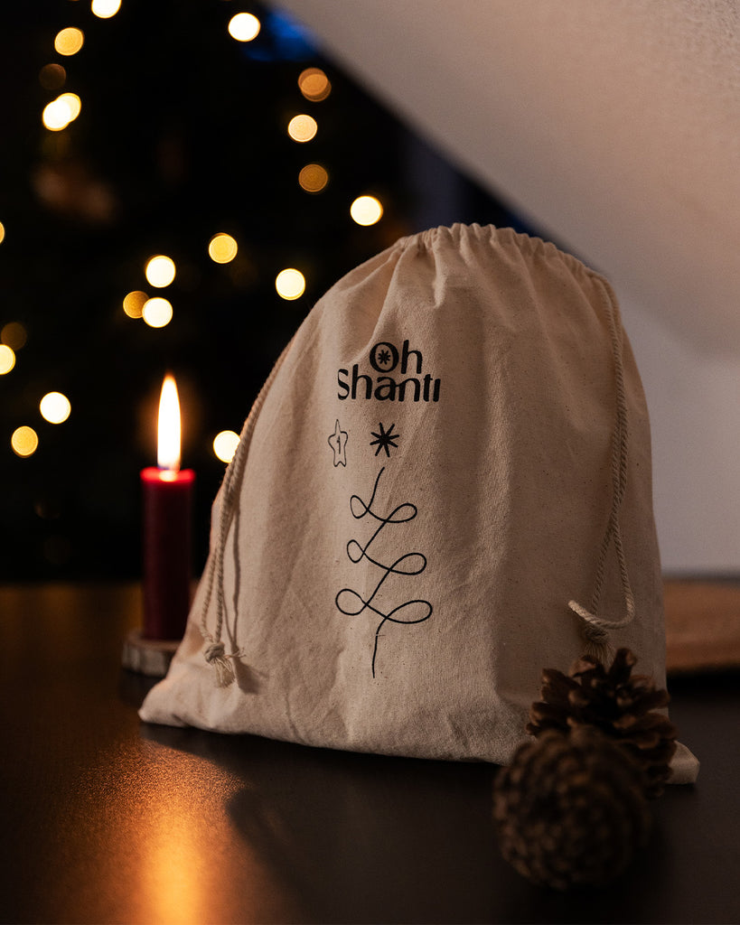 Der Oh Shanti Weihnachtsbeutel ist deine Einladung, die Feiertage bewusst zu erleben – als Zeit des Innehaltens, des Loslassens und des Neubeginns. Gefüllt mit liebevoll ausgewählten Produkten begleitet er dich durch die festliche Zeit und schenkt dir kleine Rituale für Ruhe, Achtsamkeit und Herzverbundenheit.