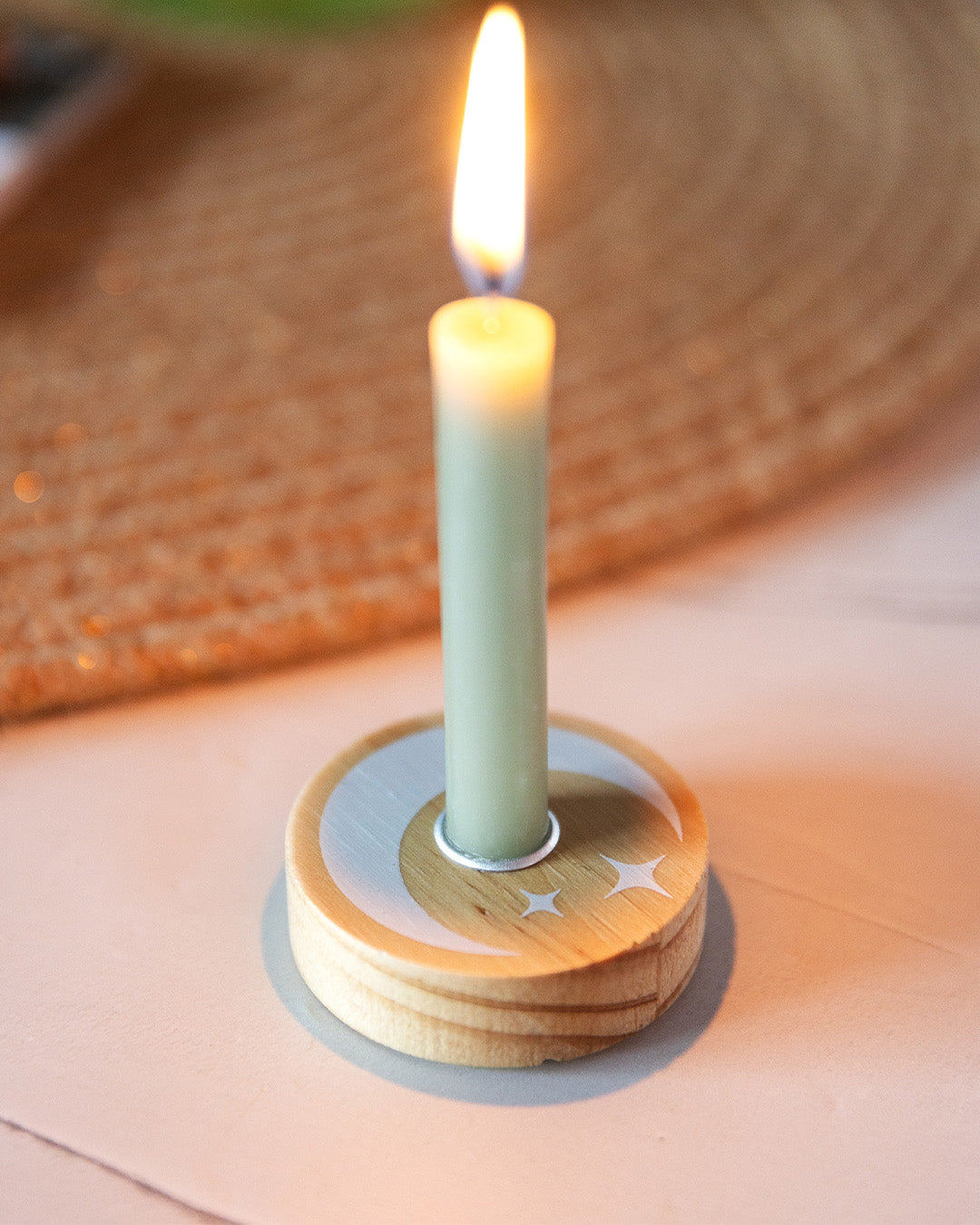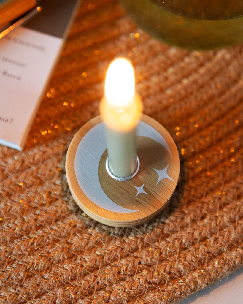 - Handlicher Kerzenhalter aus Holz mit Mond-Design
