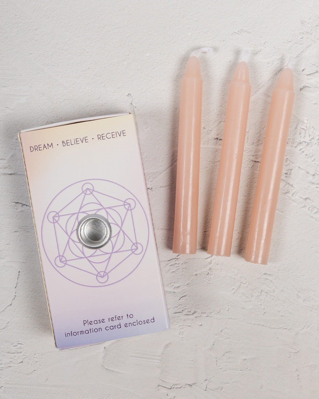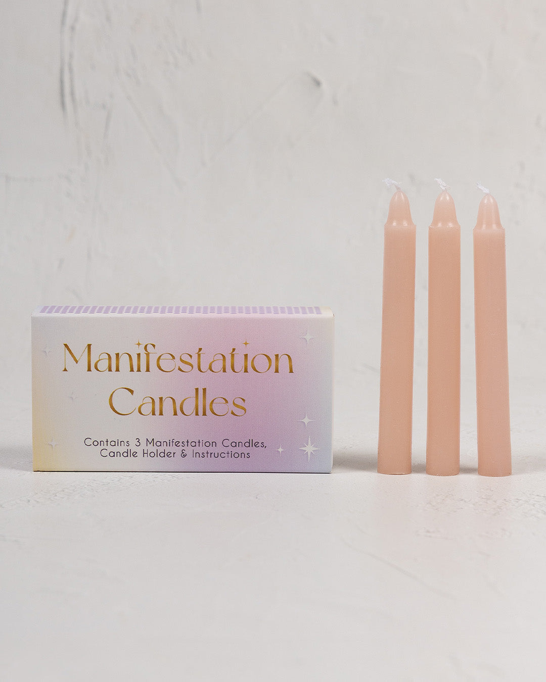In dem Set findest du 3 Manifestationskerzen, eine passende Halterung sowie eine kleine Anleitung, die dich Schritt für Schritt durch dein Ritual führt.