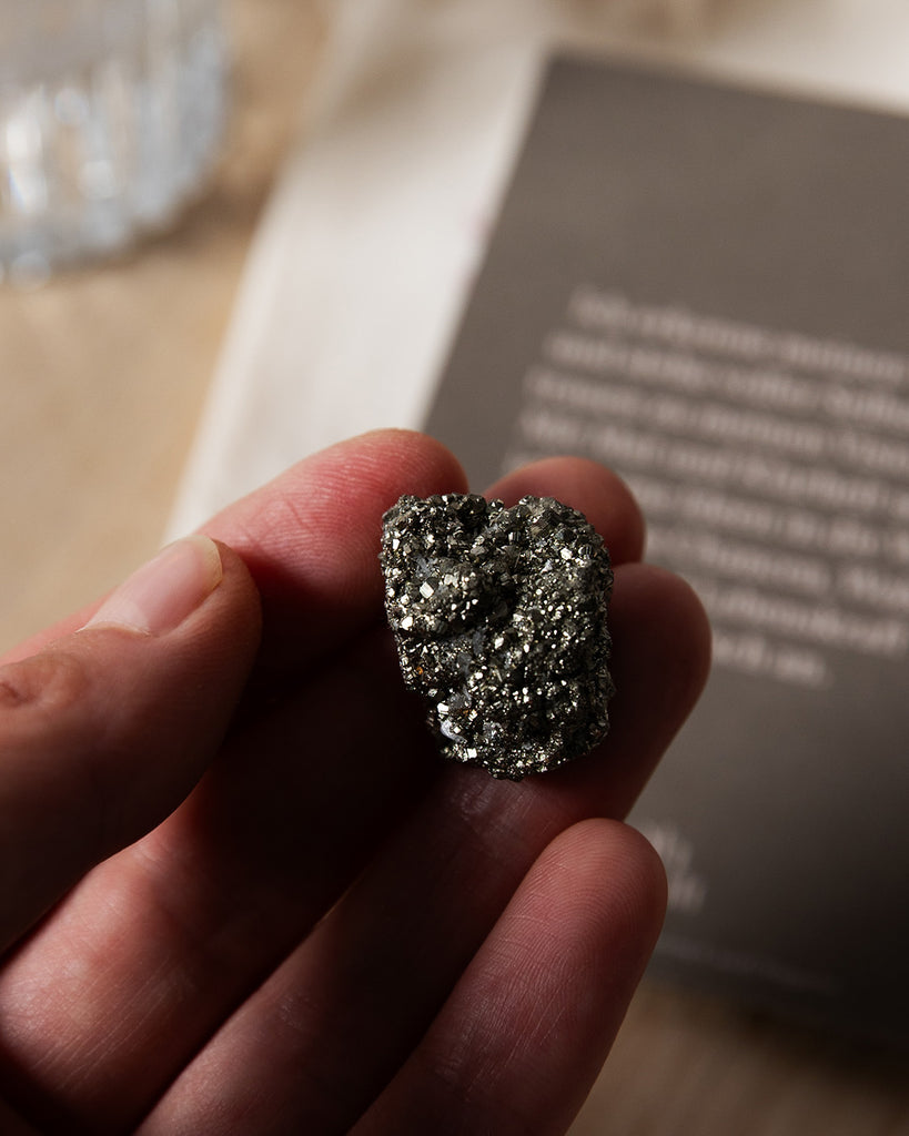 Der Pyrit Kristall, auch bekannt als Stein der Fülle und Manifestation, erinnert dich an deine innere Schöpferkraft. Sein goldener Glanz steht sinnbildlich für Reichtum – nicht nur im Außen, sondern auch im Inneren.
