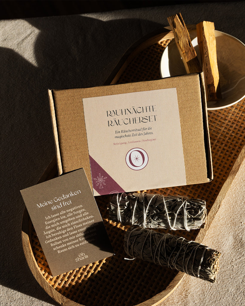 Das Rauhnächte Räucherset ist perfekt geeignet für das traditionelle Räuchern in den Rauhnächten, für kleine Zeremonien oder für bewusste Momente des Loslassens.