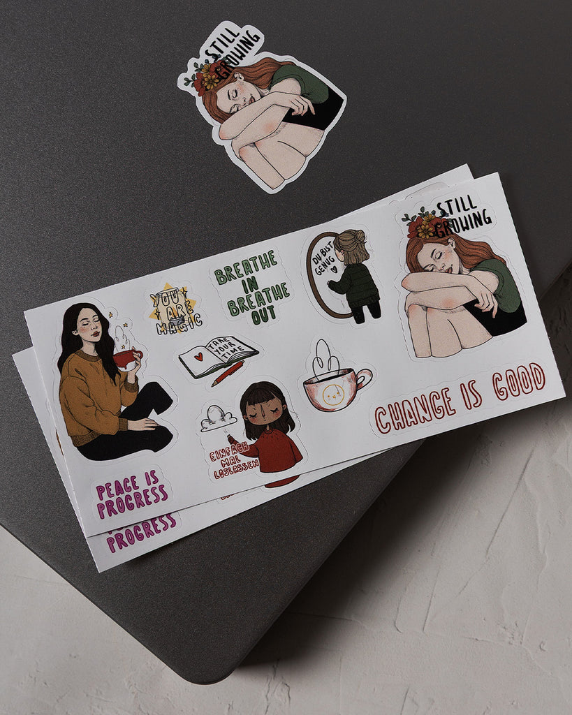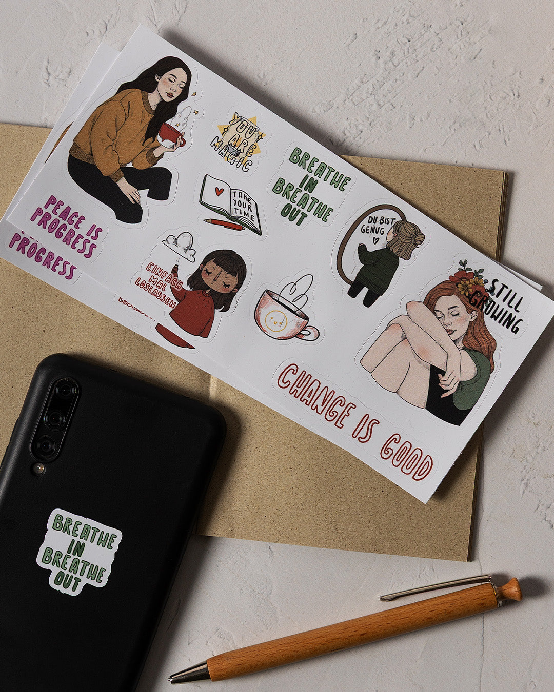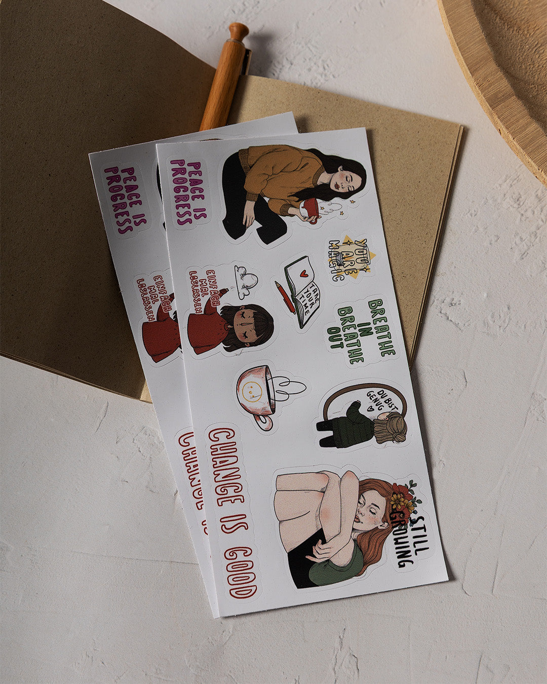 Diese liebevoll gestalteten Stickerbögen sind kleine Erinnerungen an Achtsamkeit, Selbstfürsorge und persönliches Wachstum. Mit Motiven wie “Still Growing”, “Change is Good” oder “You Are Magic” bringen sie positive Energie und Inspiration in deinen Alltag.
