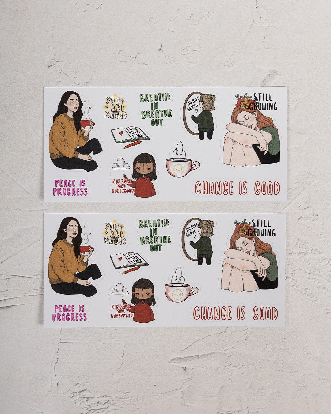 - 2 Stickerbögen mit Motiven voller Achtsamkeit, Selbstliebe & Wachstum