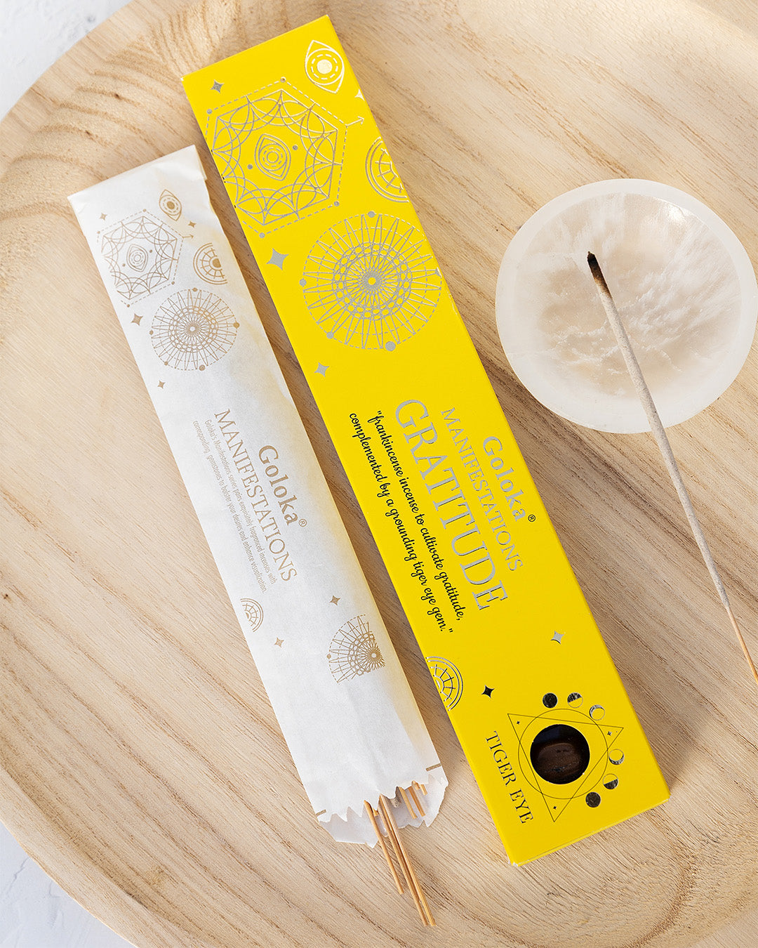 Weihrauch Räucherstäbchen Goloka Manifestations "Gratitude" mit Tigerauge